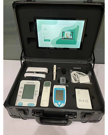 3.功能集成:系統具備測量、管理所有集成設備的功能,一體機集成心電圖、心率、血糖、血壓、血氧飽和度、尿常規、體溫等監測功能,其余檢測設備采用有線或籃牙連接,保證數據傳輸穩定