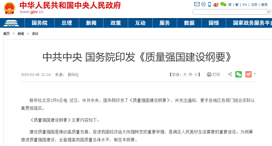 近日,中共中央、國務(wù)院印發(fā)了《質(zhì)量強國建設(shè)綱要》,并發(fā)出通知,要求各地區(qū)各部門結(jié)合實際認真貫徹落實。